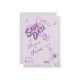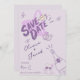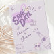 Trendy lavander hand drawn style illustrated save the date card. Embrace the latest wedding stationary design trend with it's doodles, scribbles and fun handwriting style.