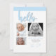 A ribbon of blue with white polkadots creates a background for a big "hello" and and features three photo windows in this handsome birth announcement. (<a href='http://www.freepik.com/free-vector/hello-illustration_1055182.htm'>Designed by Freepik</a>). <br/><br/>The card is easy to customize with your wording, font, font color, paper shape options and choice of six paper types.<br/><br/>Not exactly what you're looking for? All our products can be custom designed to meet your needs at no extra charge.<br/><br/>Simply contact us at askcottonlamb@gmail.com<br/><br/>Coordinating products available: Just ask us!