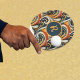 This trendy ping pong paddle sports a mix of modern and retro with colorful jazzy swirls and dots. Colors include a trendy vintage color palette of gold, light orange, deep orange, dark teal, blue, navy, black, and cream. Your monogram initial appears in a swirly typeface font in light orange encircled in a color block of deep teal blue. A coordinating ping pong ball is available.
