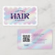 Trendy holographic design hair business cards with trendy retro style font, scalloped edge in pink and purple gradient hues. This feminine hair salon business card design features a QR code, your name, address and contact details. Perfect for your hair salon, hair boutique or hairstylist business.