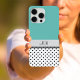 Trendy and cute smartphone case for iPhone created with monogram space for your name or initials and stylish polka dots pattern