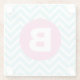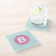 Trendy Light Blue Chevron Pink Monogram Glass Coaster