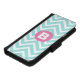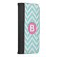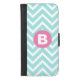 Trendy Light Blue Chevron Pink Monogram iPhone Wallet Case