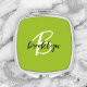 This elegant personalized compact mirror features a monogram and first name in modern black and white script on a trendy lime green background.