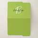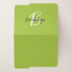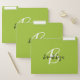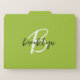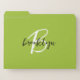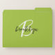 These elegant personalized file folders feature a monogram and first name in modern black and white script on a lime green background.