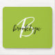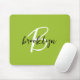 This elegant personalized mouse pad features a monogram and first name in modern black and white script on a trendy lime green background.