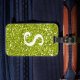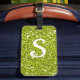 Trendy Lime Green Glitter Monogram Initial Luggage Tag