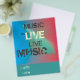 Trendy out there music flyer,Colourful,blue aqua red fractial background.text over this in different fonts." Live Music ". at the bottom " Where" "When"