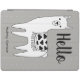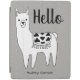 Adorably cute black and white sketchy style llama with the word "Hello" in black script over gray and white polka dots. The bottom features your personalized name in black letters.
