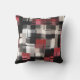 Trendy Maroon Black White Abstract Plaid Outdoor Pillow