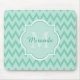 Trendy Mint Green Chevron Zigzag Name and Monogram Mouse Pad