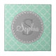 Trendy Mint Trellis Pattern Grey Monogram Tile