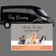 Dog and pet salon business card template in a contemporary design with image of some dogs in the background and a layout already organized so you can just replace our text with yours. Designed for either a mobile grooming service or retail salon.