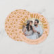 Designed to fit the circle die-cut, this trendy holiday card features the message "Happy New Year" in a modern, handwritten font that wraps around the circle photo frame. Hand-drawn stars and dots add a festive, whimsical touch to the design. The back of the card features a coordinating pattern. This design is perfect for kids and teens!