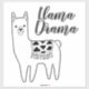 Save the drama for your llama! This llama sticker is a modern hand drawn illustration in black and white. The llama has a blanket over its back with an Aztec style pyramids pattern in black. The words "llama drama" is in thick black script. Place in any configuration on your wall, suitcase, or laptop!