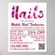 Trendy Modern Pink Nail Technician, Nail Salon Advertising Poster By The Business Card Store.