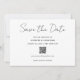 Trendy Modern Minimalist Elegant Black And White Handwritten Script Simple Template With Your Wedding Website QR Code Invitations & Stationery & Announcements / Save the Dates / Printed Flat Save The Date Card.