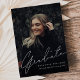 This Modern Simple Script Two Photo Graduation Announcement features a full size photo on the front with white text overlay and a back photo with optional details.