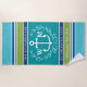 Trendy Monogram Anchor Laurel Wreath Stripes Aqua Beach Towel