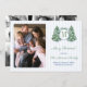 Trendy Monogram Blue Green Bow Stripes Photo Holiday Card