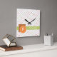 A trendy dotted line pattern clock with neutral red, brown, and green stripes against a white background, wrapped with a geometric mod square and circle design. Personalize by adding your name and initials. Perfect fashion for the modern and stylish woman.