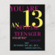 You Are 13 - Official Teenager Birthday Card. Colored in yellow, pink, dark pink purple and light blue and dark blue on the other side.