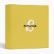 Trendy, stylish custom name and initial monogram style 3 Ring Binder in modern minimalist script typography in off black and white on a simple fun mustard yellow background. The name and initial can easily be personalized with your own name or the name of a loved one for a perfect gift for a friend or loved one!