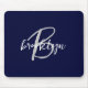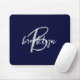 Trendy Navy Blue Gray White Script Monogram Mouse Pad