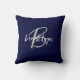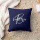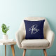 Trendy Navy Blue Gray White Script Monogram Throw Pillow