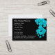 Trendy Party Planner business card design template created with stylish teal colored balloons in the background and text you can replace with your own. Designed for a party planning service, balloon delivery services, or party supply store.