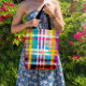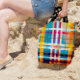 Introducing our Personalized Tote Bag, the perfect blend of elegance and summer vibes. This summer edition tote features an elegant traditional plaid design with stunning fuchsias, blues, yellows, and gold accents.