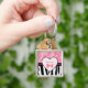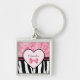 Trendy Pink and Black Zebra Pattern Bow and Name Keychain
