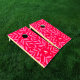 Trendy Pink and red foliage monogram corn hole set. Cute and modern botanical illustration pattern with pink branches. Personalize this with your own monograms.