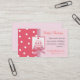 Stylish custom bakery business card done with graphics of a pretty pink cake, in the middle of a pink and a salmon and white polka dot backgrounds. Perfect for a bakery shop, party shop, or an independent custom baker. Customize the text fields to personalize for yourself or your shop.