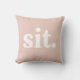 Fun and modern throw pillow features trendy Pink Dogwood color background with white customizable text. Leave "sit" as-is, or update with a monogram, initial or other short message.