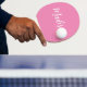 A chic personalized pink monogram ping pong paddle for a girl who loves simple, handwritten gifts. Beautiful white cursive script spelling out your name in elegant script.