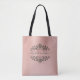 A classy metallic rose gold pink monogram with grey script decorates this tote bag. Designed for you by Blackberry Boulevard.