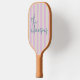 Trendy Pink White Stripes Custom Script Wedding Pickleball Paddle