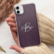 Trendy Plum Purple Gray White Script Monogram Case-Mate iPhone Case