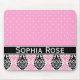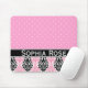Trendy Polka Dot Damask Pattern with Name Mouse Pad