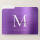 Trendy Purple Brushed Metal Monogram Script Name File Folder