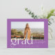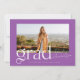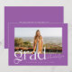 This modern and trendy graduation announcement features a purple and white color palette and a large photo of your graduate. A bold and stylish "Grad" adorns the front. The back of the card features simple type allowing you to tell more about your graduate and their plan for the future. Or, you can change it to a graduation party invitation. You can find other versions of this design in my Zazzle store.