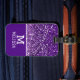 Personalized luggage tags with a trendy Purple glitter print.Add your name and monogram initial.