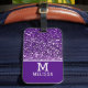 Trendy Purple Glitter Name Monogram Initial Luggage Tag