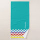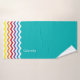 Trendy Rainbow Chevron Teal Pattern Personalized Bath Towel Set