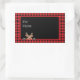 Trendy Red Black Buffalo Check with Reindeer Rectangular Sticker