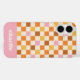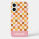 Make a bold statement with this custom phone case featuring a trendy checkerboard pattern in vibrant orange, pink, and cream hues. Personalize it with your name in a fun retro font for a playful and unique touch. Perfect as a girly gift idea for someone who loves bold, retro-inspired designs, this case combines eye-catching style with durable protection.