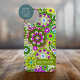 A bold, floral design with colorful shades of purple and green with a fun color block to add your name or any text. The crazy flower pattern has a variety of colors.
