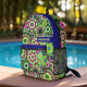 Trendy Retro Floral Pattern with name block Printed Backpack