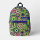A bold, floral design with colorful shades of blue, purple and green with a fun color block to add your name or any text. The crazy flower pattern has a variety of colors.